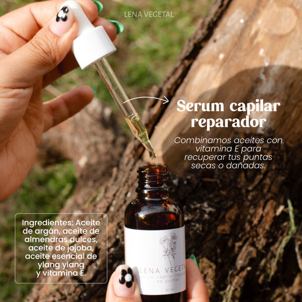 Combinamos aceites con vitamina E para recuperar tus puntas secas o dañadas. Ingredientes: Aceite de argán, aceite de almendras dulces, aceite de jojoba, aceite esencial de ylang ylang y vitamina E.